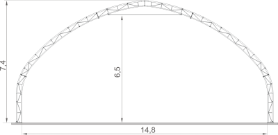 Konstrukcja nośna stworzona jest z galwanizowanej rury o średnicy 60 mm i grubości 2,0 mm. Cała struktura jest cynkowana ogniowo z obu stron, zapewniając trwałość i odporność na korozję. Pokrycie konstrukcji stanowi plandeka najwyższej klasy, wzmocniona siatką, o gramaturze 900 g/m². Dostępna w kolorach z palety RAL, plandeka posiada oczka na obu końcach, co umożliwia łatwe przedłużenie konstrukcji w przyszłości. Konstrukcja jest mocowana do gruntu za pomocą kotew o długości 1 metra.