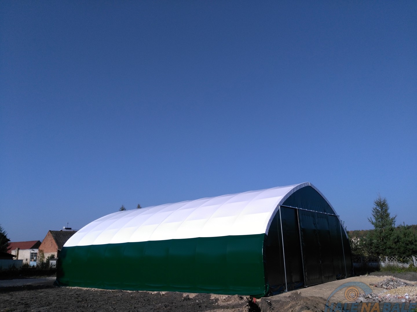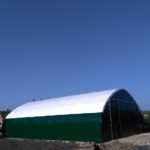W ostatnim czasie na Śląsku została oddana do użytku hala o wymiarach 12m x 18m. Tym razem klient zdecydował się na obustronne zamknięcie hali w postaci bram przesuwnych o wymiarach 4m x 4m, plandeka dachowa została opcjonalnie wyposażona w pas doświetlający umożliwiający pracę w dzień bez dodatkowego oświetlenia.