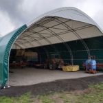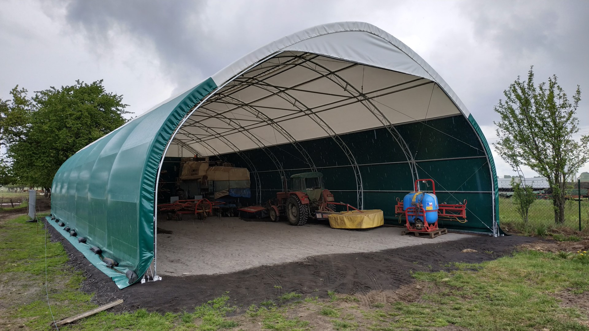 Hale o szerokości 10m ze względu na swoją konstrukcję kratownicową cieszą się ciągle zwiększonym zainteresowaniem. Przykładem jest realizacja hali 10×21 w woj. dolnośląskim gdzie klient dodatkowo wybrał opcję zamkniętej ściany szczytowej. Ciekawostką jest użycie worków z piskiem do obciążenia plandeki na bokach zamiast tradycyjnego obsypania piaskiem – takie rozwiązanie gwarantuje, że deszcz nie zmyje obciążenia plandeki.