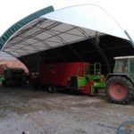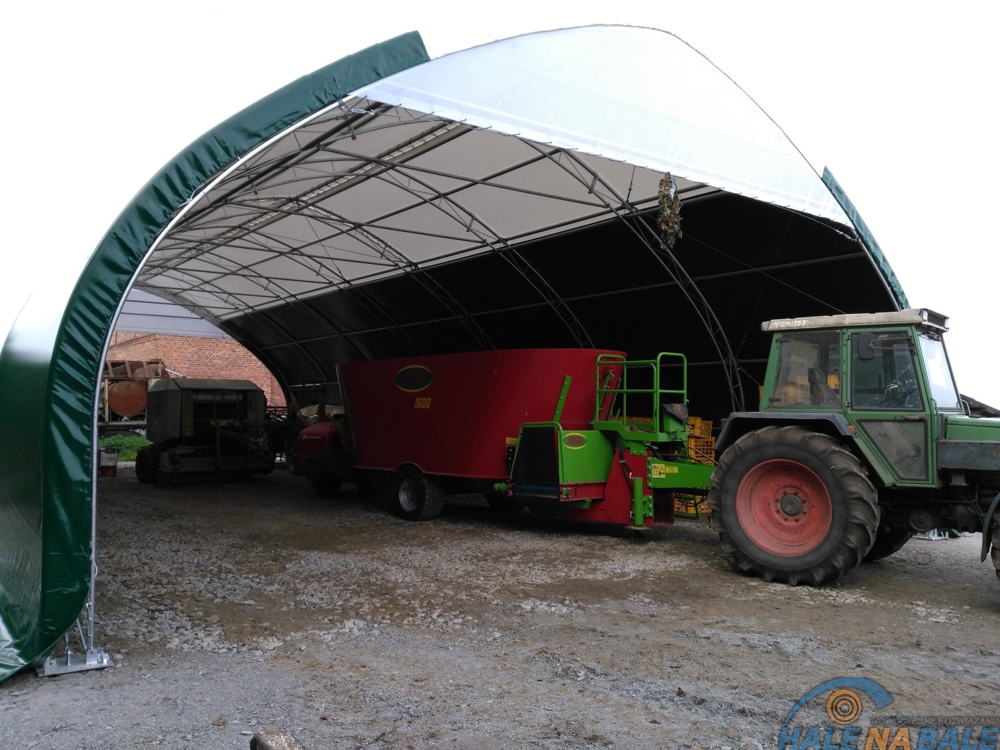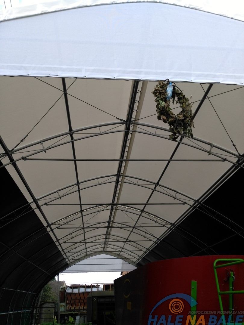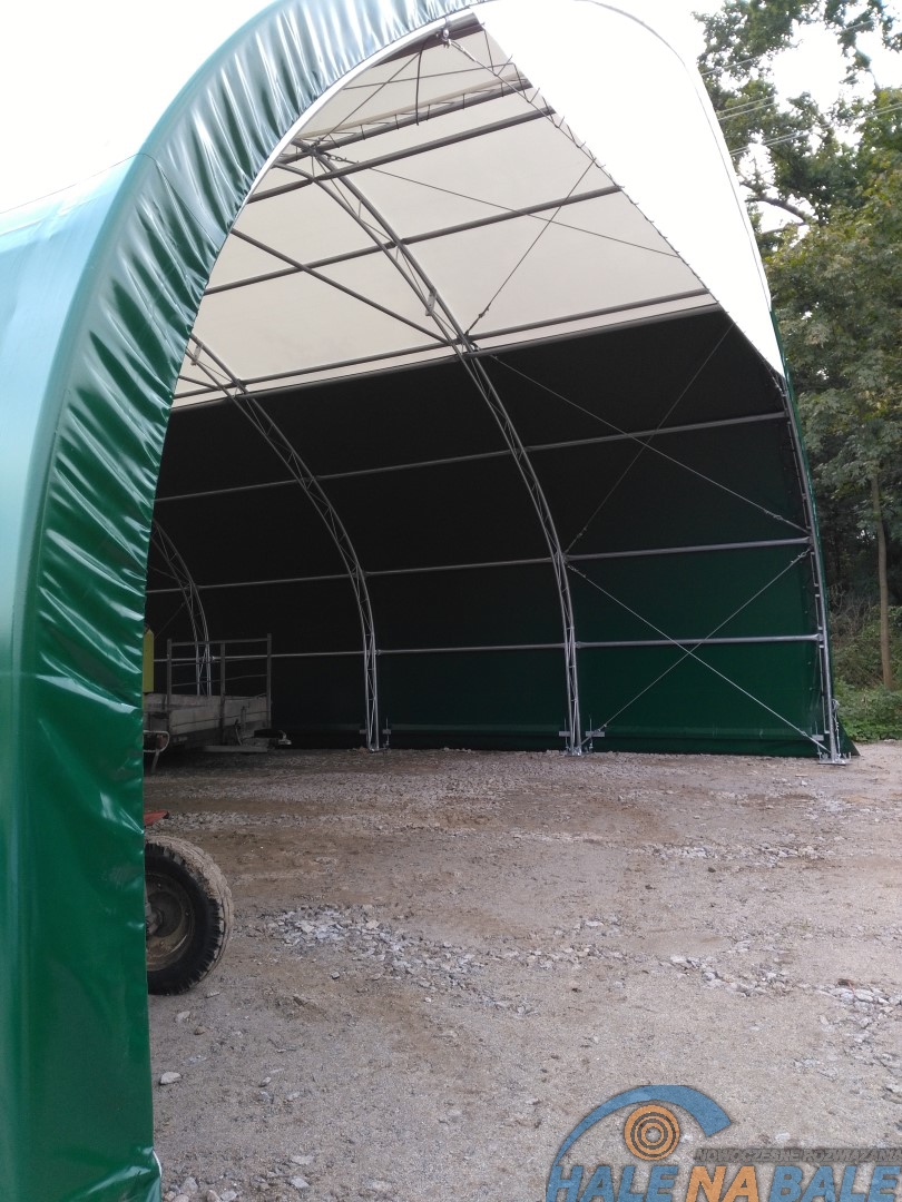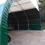 Kolejna realizacja w województwie dolnośląskim zakończona. Hala o wymiarach 10m x 21m została zamontowana na wypoziomowanym oraz dodatkowo utwardzonym gruncie za pomocą kotew o długości 130cm. Dodatkowo zastosowano siatki ograniczające przedostawanie się deszczu oraz śniegu tak aby zabezpieczyć znajdujący się wewnątrz sprzęt.