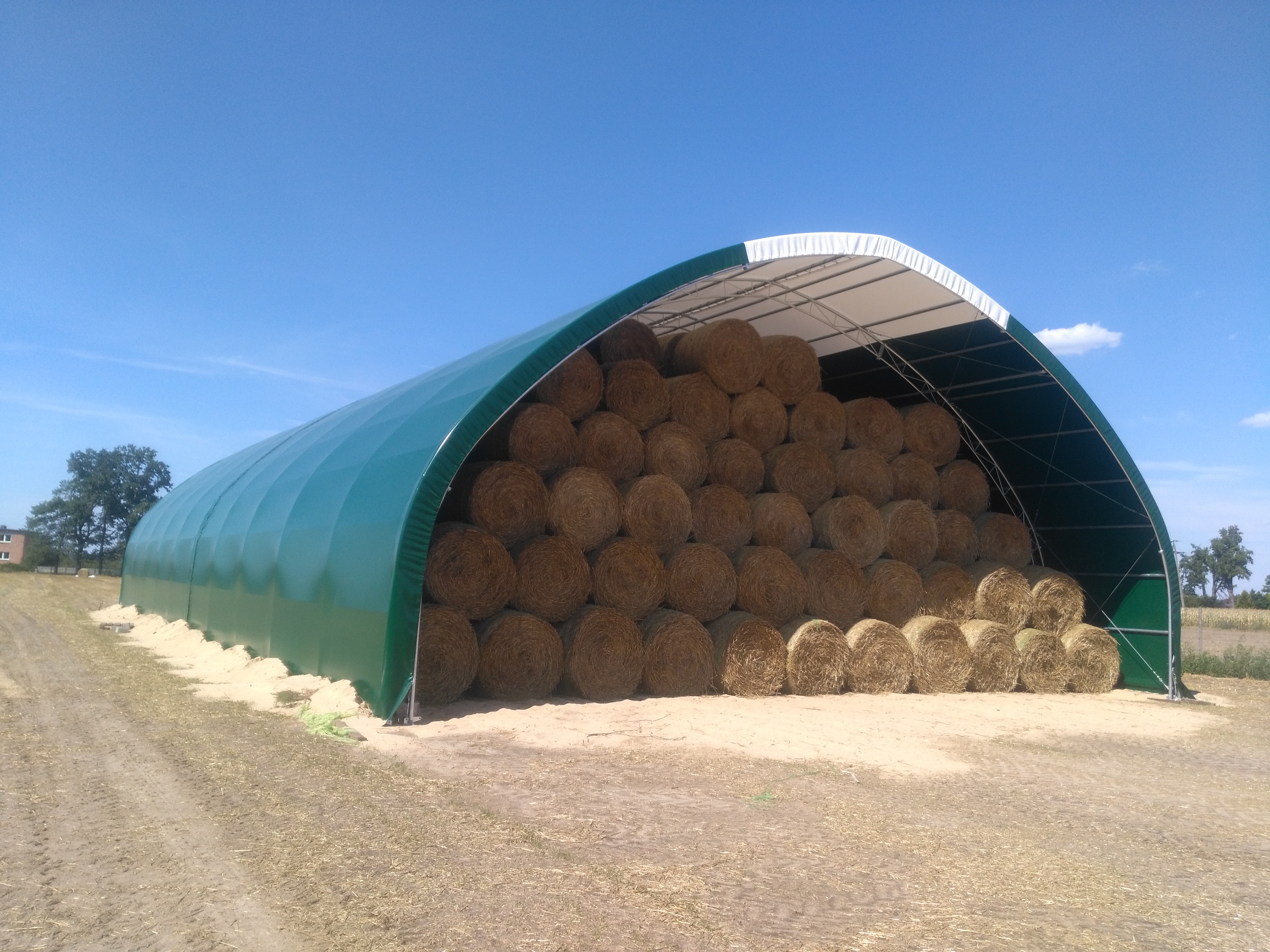 Kolejny szczęśliwy posiadacz naszej hali, tym razem zawitał do nas z sąsiedniego powiatu. Hala 15×30 została wykorzystana jako magazyn dla słomy. Montaż prezentowanej hali trwał nie całe 4 dni. Szybki czas realizacji zamówienia oraz krótki czas montażu w połączeniu z najwyższą jakością oferowanych produktów na rynku to podstawowe czynniki dzięki którym budujemy zaufanie wśród naszych klientów.