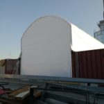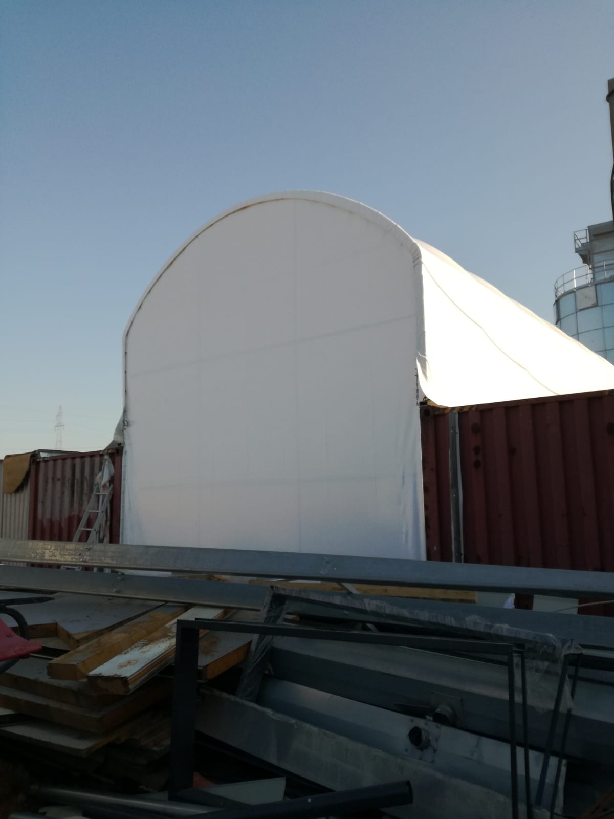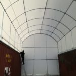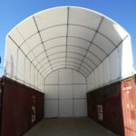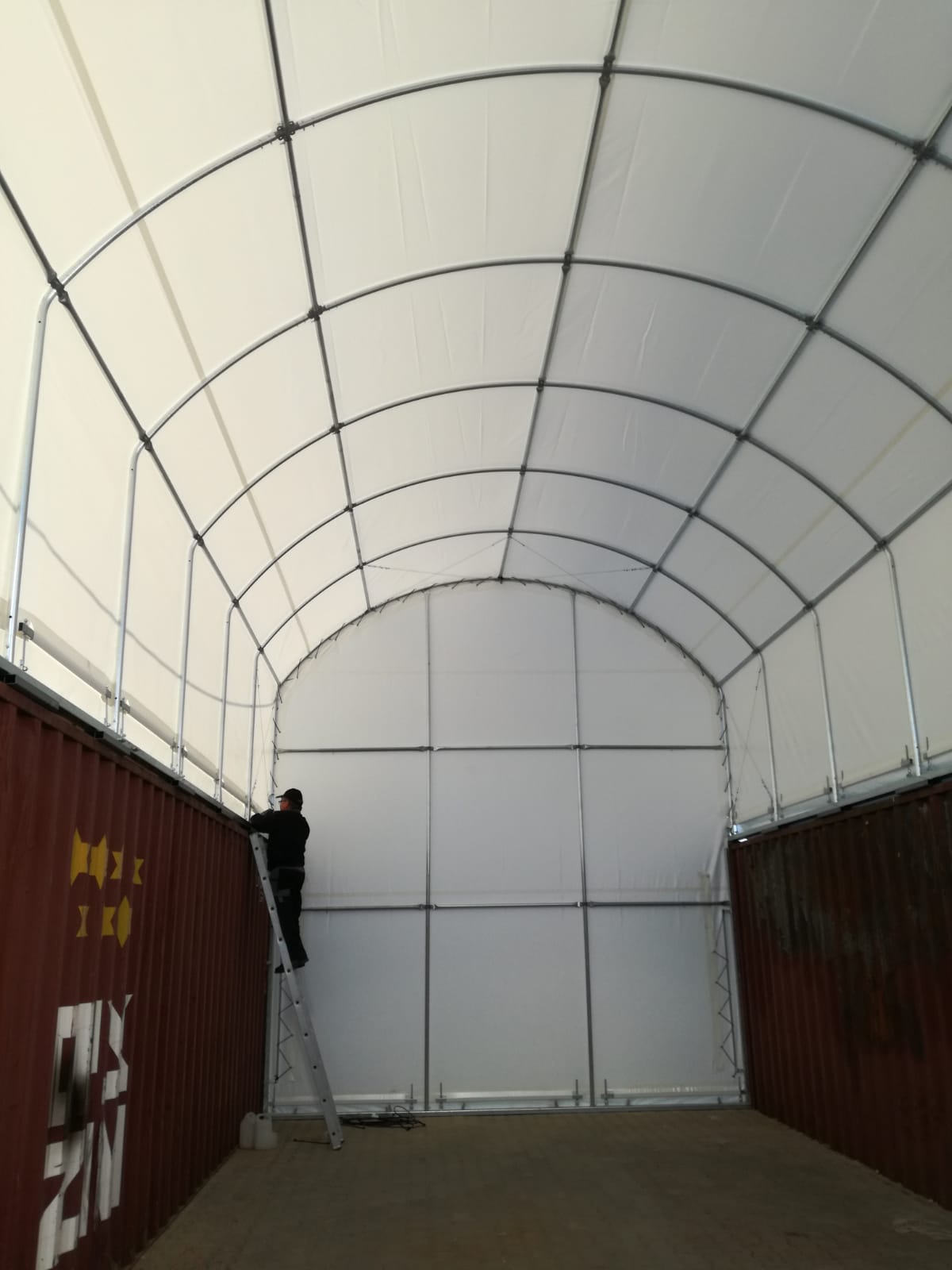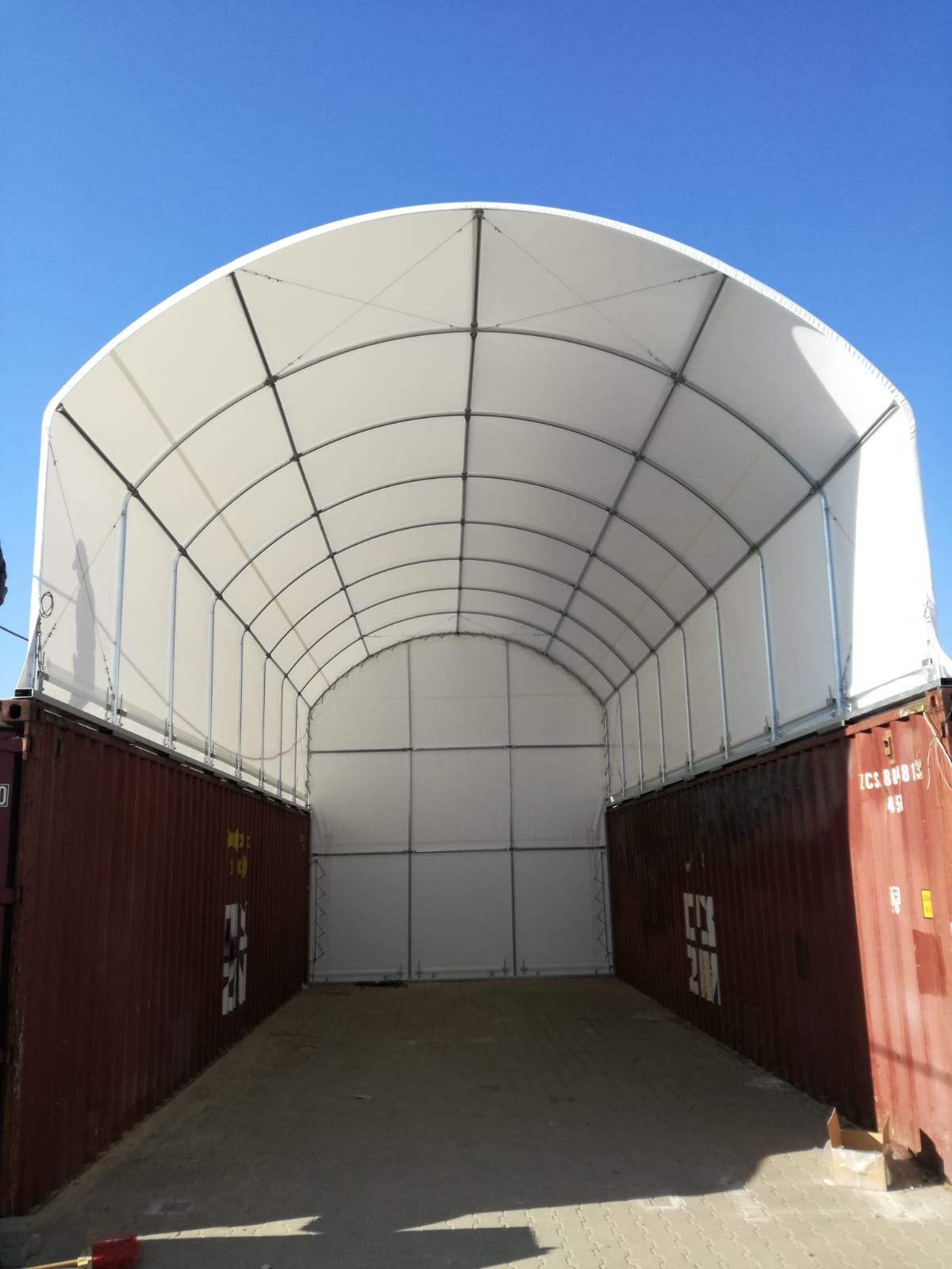 W dniu dzisiejszym zakończyliśmy realizację obiektu w woj. wielkopolskim. Hala 5m x 12m stawiana na kontenerach morskich będzie służyła jako tymczasowy magazyn. Dzięki zastosowaniu ściany tylnej ograniczamy dostęp wody i wiatru do wnętrza magazynu. Dostaliśmy zapewnienie, że współpraca będzie kontynuowana ponieważ do zakrycia zostało jeszcze wiele przestrzeni między kontenerami – to świetny sposób na wykorzystanie przestrzeni, która dzięki zadaszeniu pełni rolę prawdziwego magazynu.
